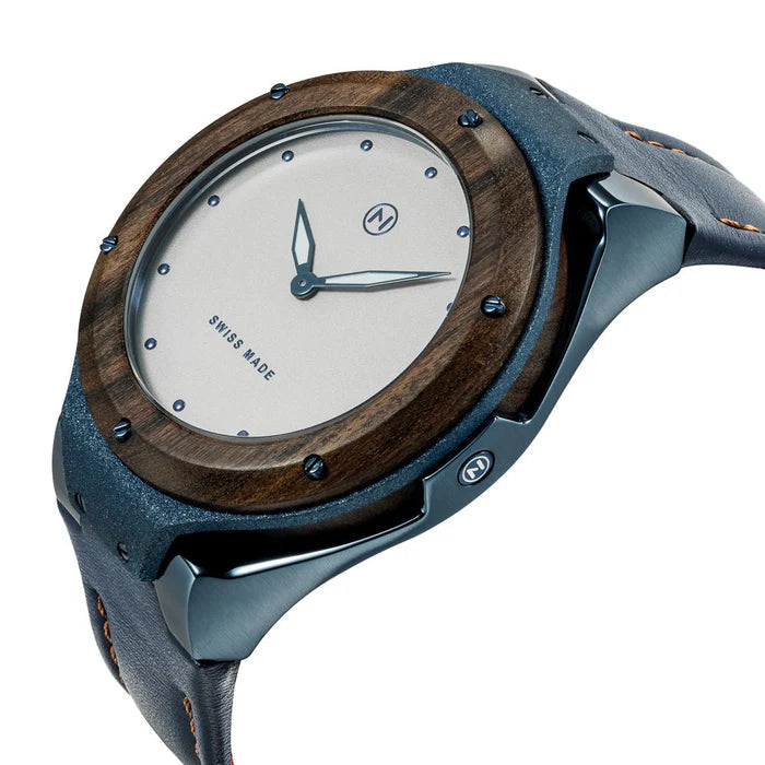 Partnered with an ebony wood bezel, a genuine leather strap, and a Swiss quartz movement. A true Craftsman is born in the smallest of details. It takes 60 intricate pieces assembled in layers of artistry and architecture, while stylishly incorporating the magnificent and hand-selected ebony wood, to create the NOVE Craftsman. Blending the raw, natural materials of our earth into a refined and exquisitely smooth case design. A Swiss timepiece for people who live by their hard work, and only accept equal rewards.
