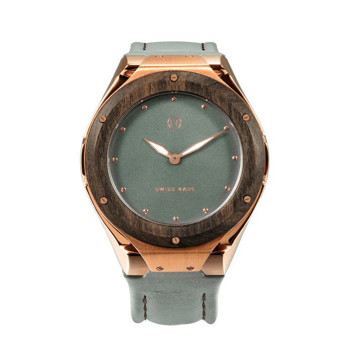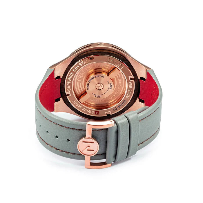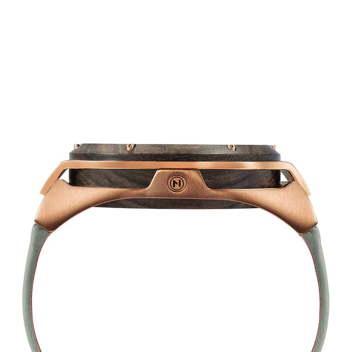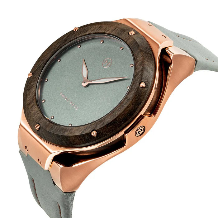 Partnered with an ebony wood bezel, a genuine leather strap, and a Swiss quartz movement. A true Craftsman is born in the smallest of details. It takes 60 intricate pieces assembled in layers of artistry and architecture, while stylishly incorporating the magnificent and hand-selected ebony wood, to create the NOVE Craftsman. Blending the raw, natural materials of our earth into a refined and exquisitely smooth case design. A Swiss timepiece for people who live by their hard work, and only accept equal rewards.