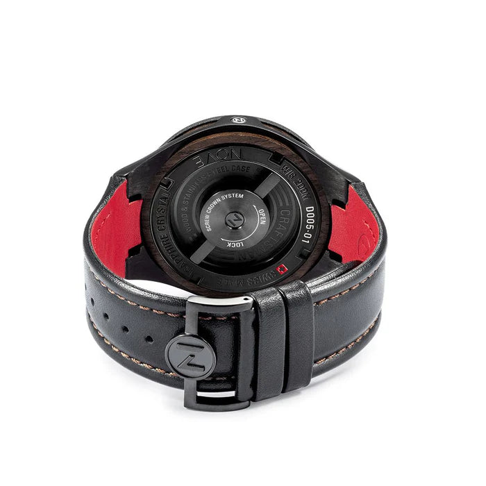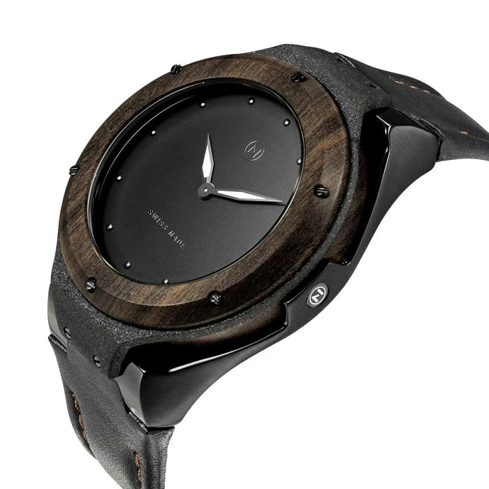 Partnered with an ebony wood bezel, a genuine leather strap, and a Swiss quartz movement. A true Craftsman is born in the smallest of details. It takes 60 intricate pieces assembled in layers of artistry and architecture, while stylishly incorporating the magnificent and hand-selected ebony wood, to create the NOVE Craftsman. Blending the raw, natural materials of our earth into a refined and exquisitely smooth case design. A Swiss timepiece for people who live by their hard work, and only accept equal rewards.