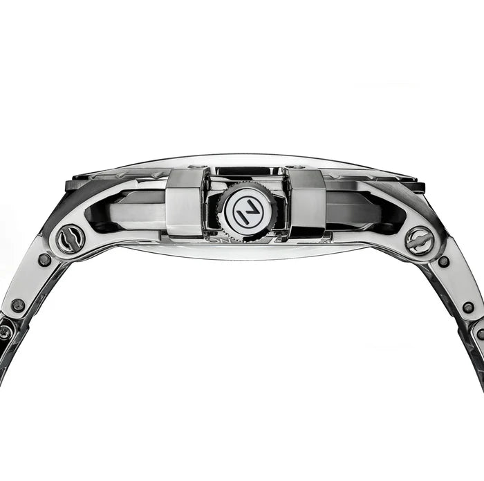 Synonymous with luxury and performance, Modena merges aggressive lines with elegant design, interpreted in a precision case architecture with proportioned details, echoing fine automotive features. With streamlined Lugs design framing a minimalist air in-take, brake system bezel/crown guards and engine heat sink on the dial, the Modena collection represents the next level of Nove performance.