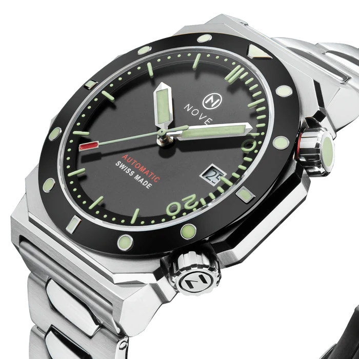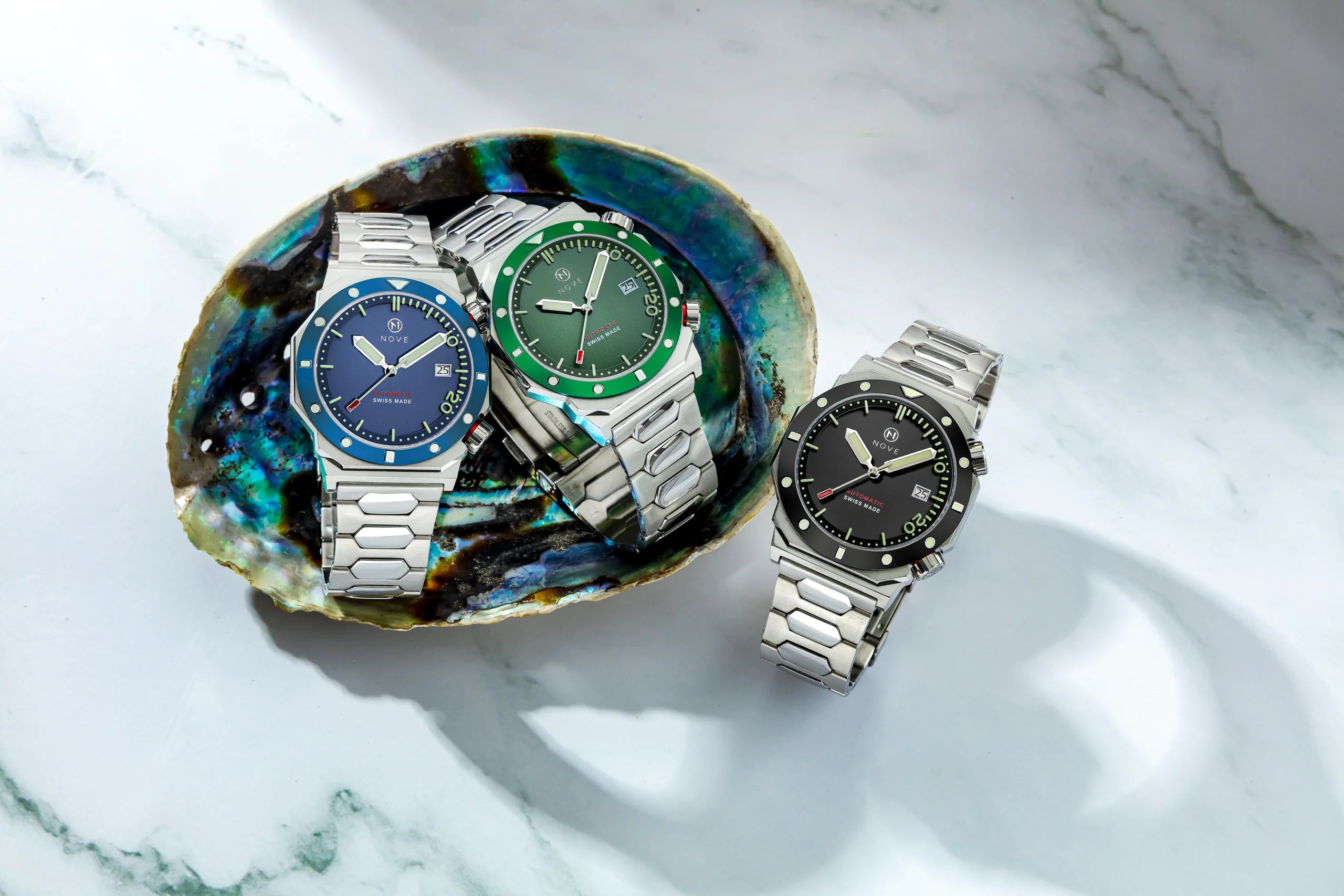 Elevate your timekeeping experience with the NOVE Marine - where the art of Swiss craftsmanship is reimagined, and the boundaries of luxury are pushed. Embrace the extraordinary and embark on a timeless journey that reflects your unique style and spirit. As you embark on this remarkable adventure, let the NOVE Marine be your trusted companion, a symbol of your exquisite taste and indomitable spirit.