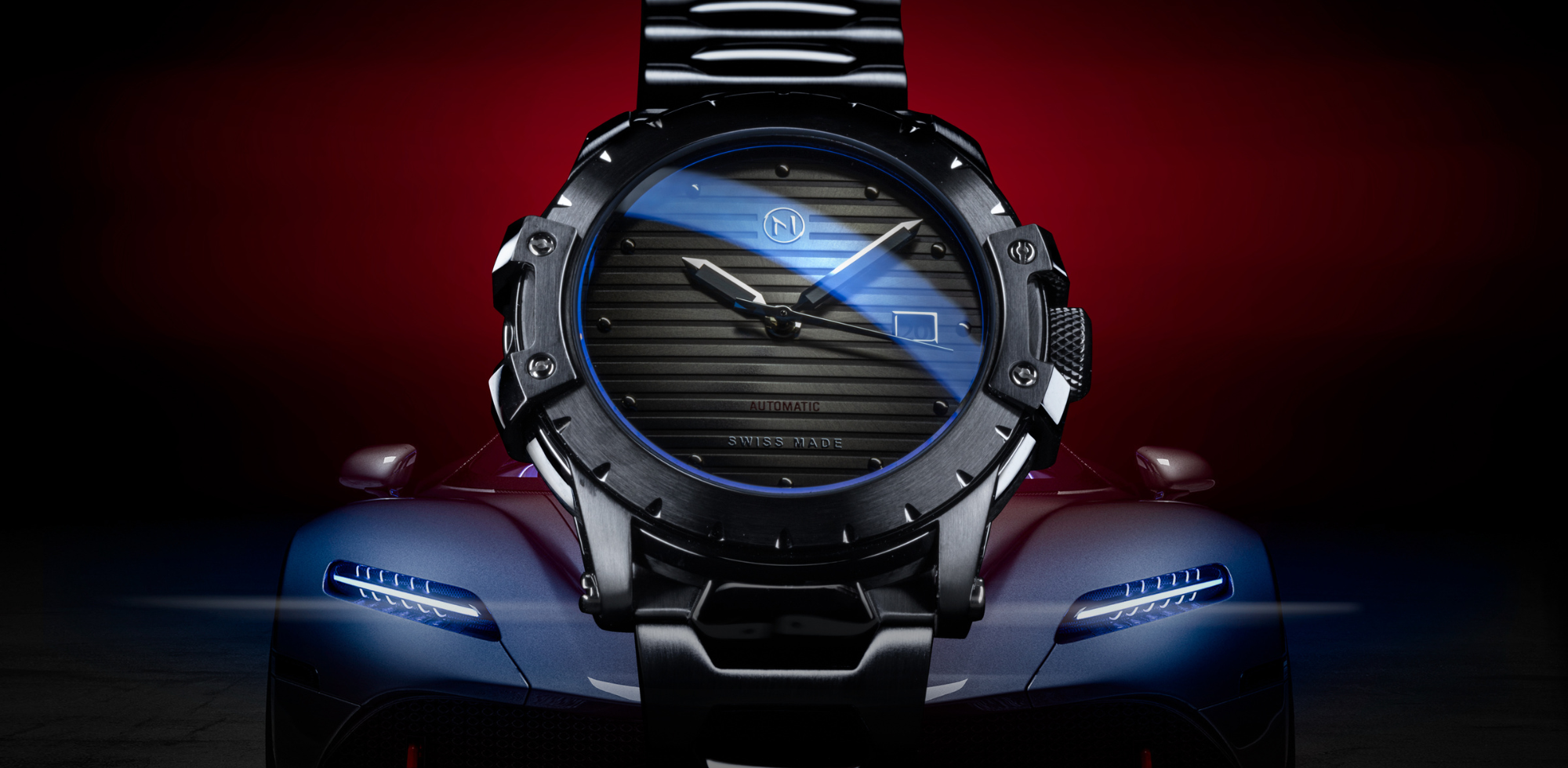 Synonymous with luxury and performance, Modena merges aggressive lines with elegant design, interpreted in a precision case architecture with proportioned details, echoing fine automotive features. With streamlined Lugs design framing a minimalist air in-take, brake system bezel/crown guards and engine heat sink on the dial, the Modena collection represents the next level of Nove performance.