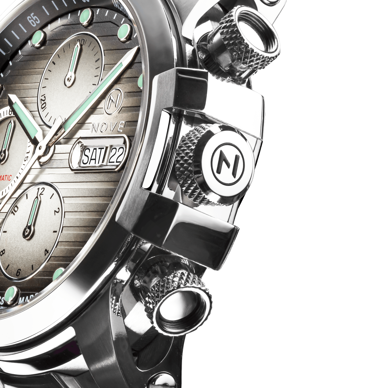 The 316L stainless steel case and bracelet of the Modena 500 radiate luxury and elegance. Its sleek and sophisticated design mirrors the minimalist aesthetic that NOVE is renowned for.