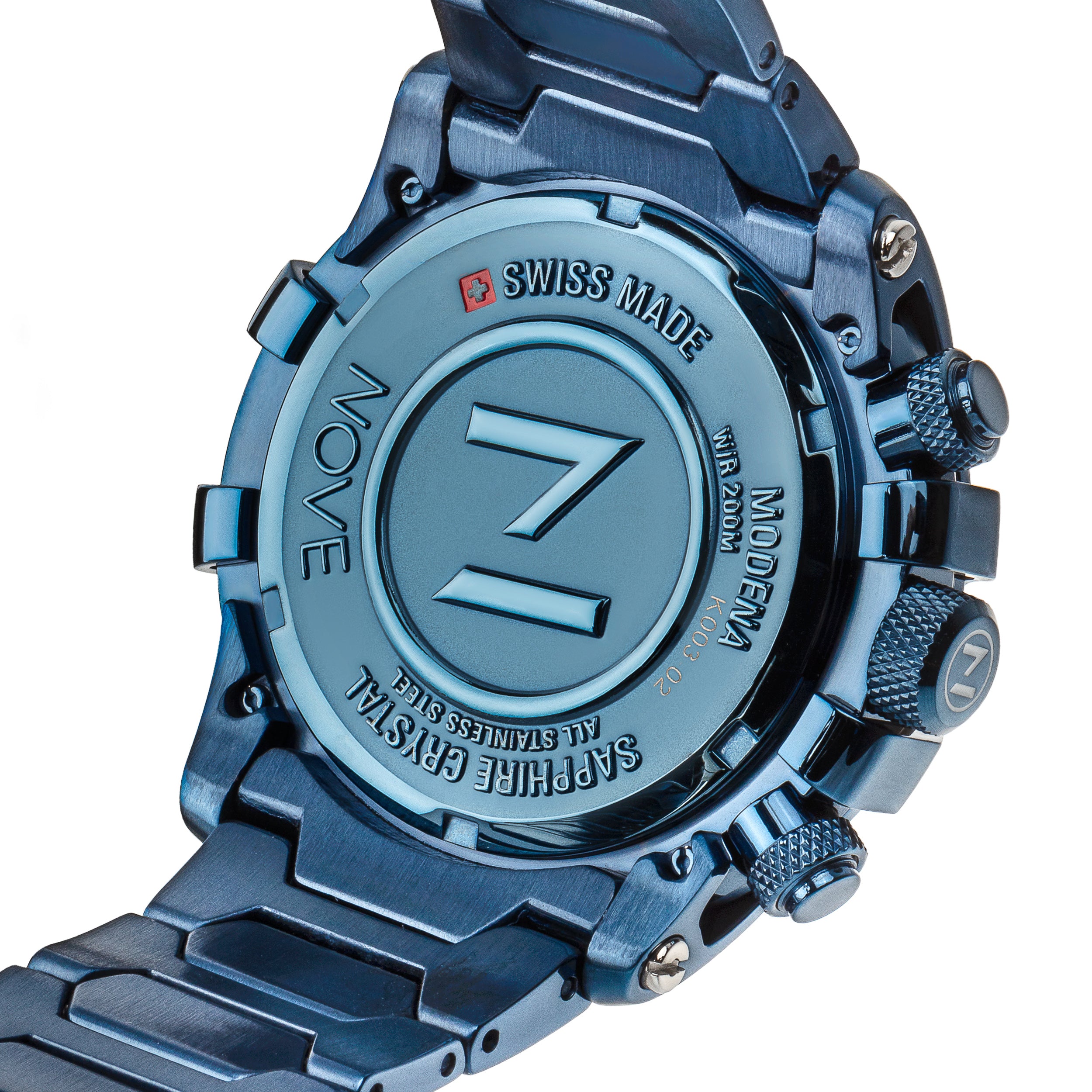 Utilizing streamlined Lugs design framing a minimalist air in-take, brake system bezel-crown guards and other details inspired by high end automotive design, the Modena collection represents the next level of Nove performance.