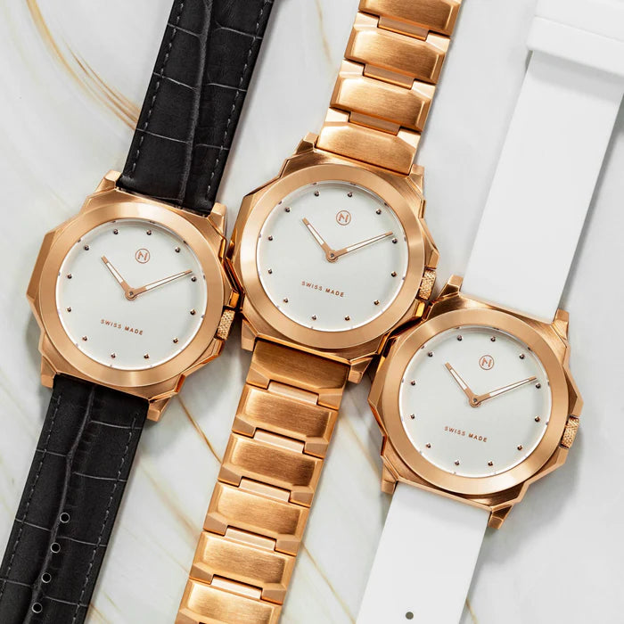 The NOVE Rocketeer luxury watch comes with 3 easily interchangeable straps: Leather, Silicon & Stainless Steel. The slim design and geometric contours are made possible with 316L stainless steel, and Swiss Ronda 1026 movements, featuring 4 jewels all enclosed in Sapphire Crystal to ensure quality and consistency in your time keeping.