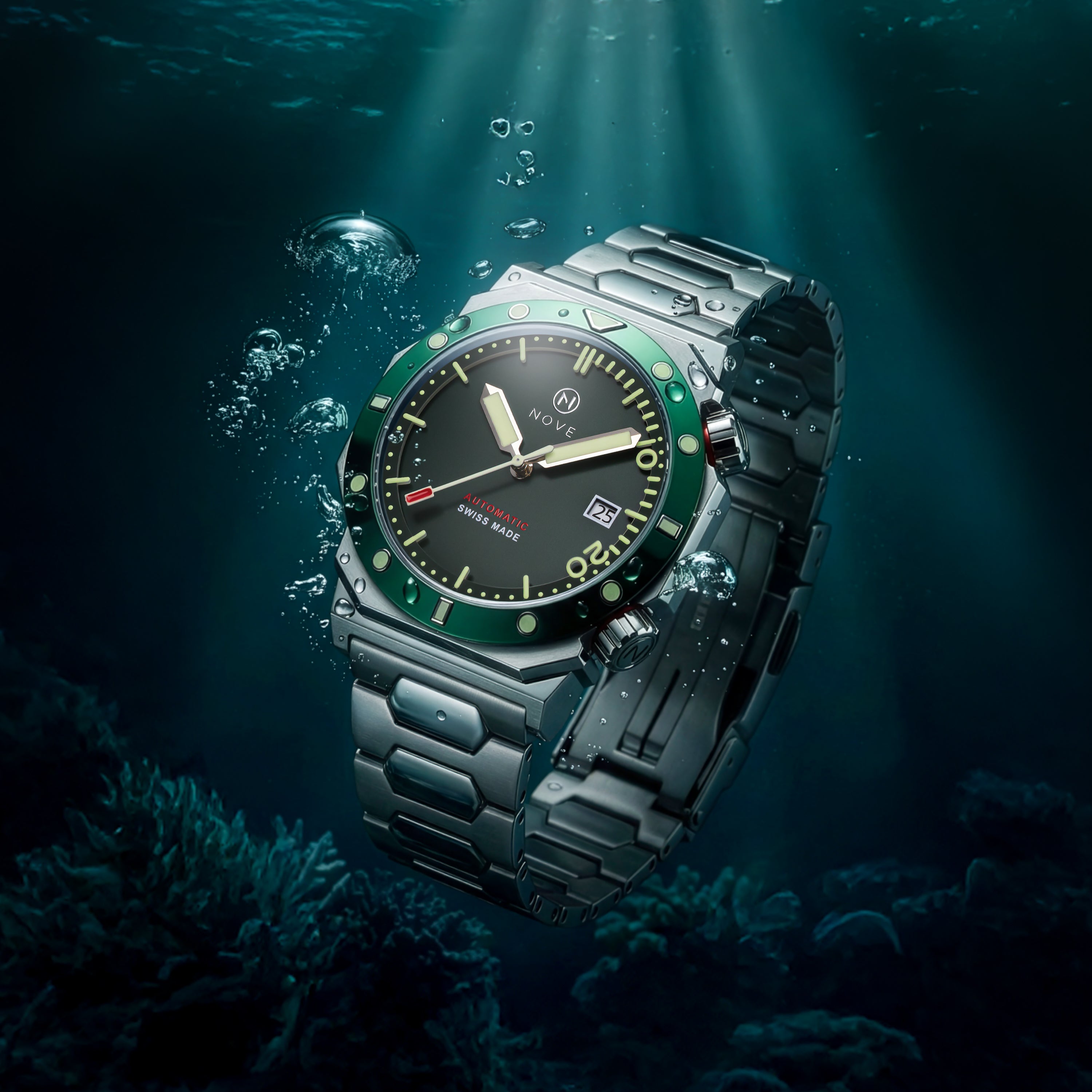 Introducing the NOVE Marine - a timepiece that embodies the essence of opulence and refinement. Crafted with the utmost precision and unwavering attention to detail, the Marine is a testament to the artistry that lies at the heart of Swiss watchmaking.